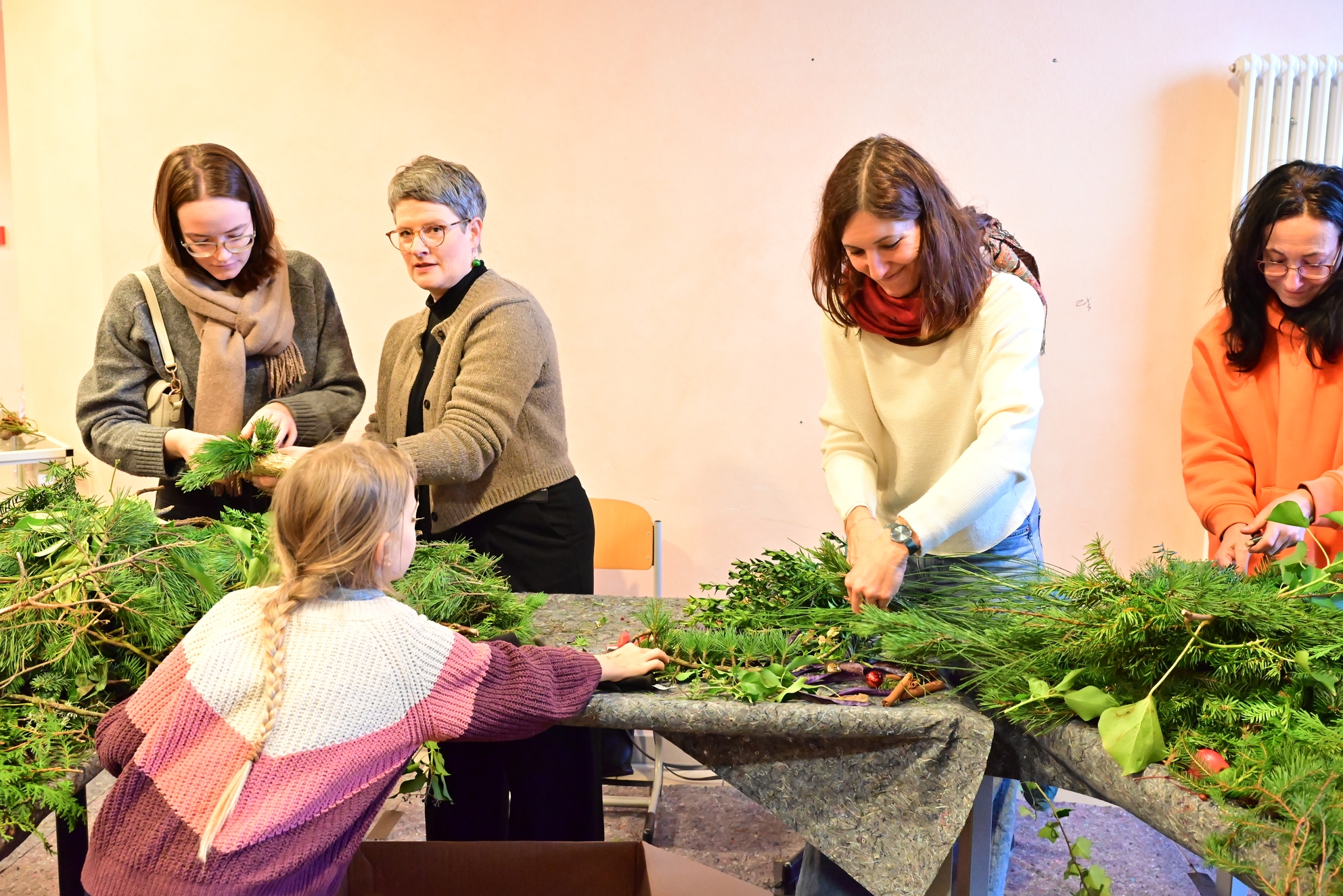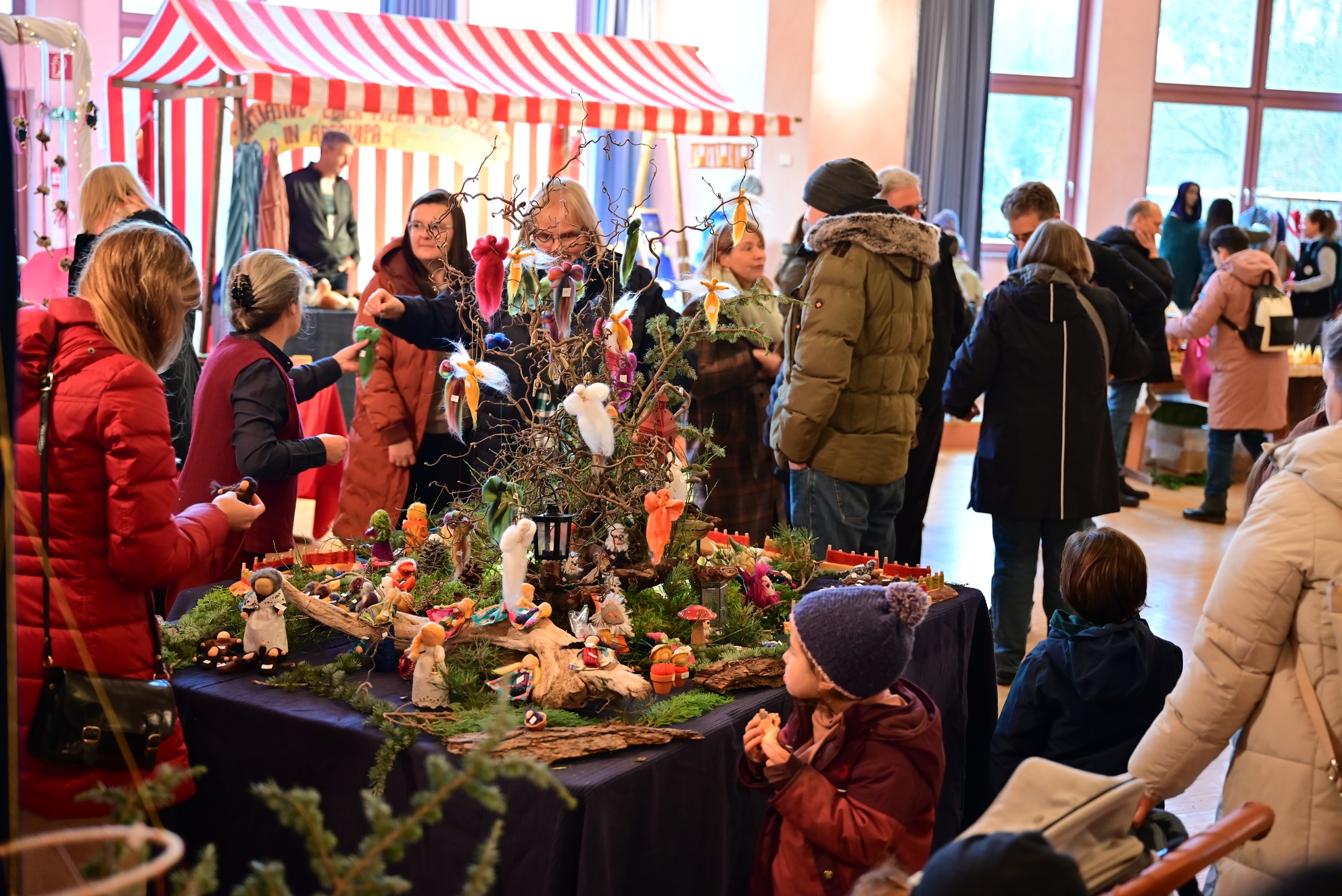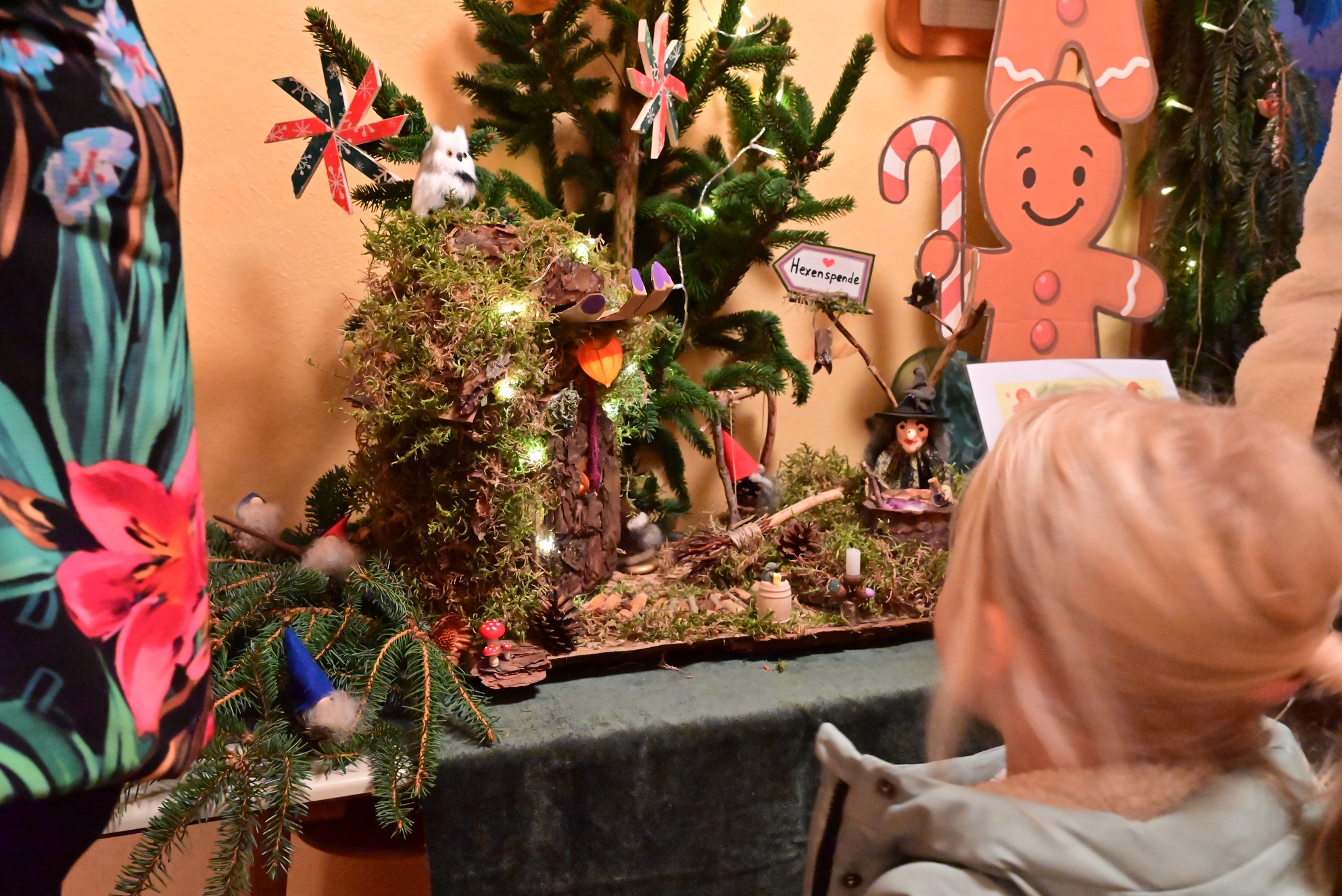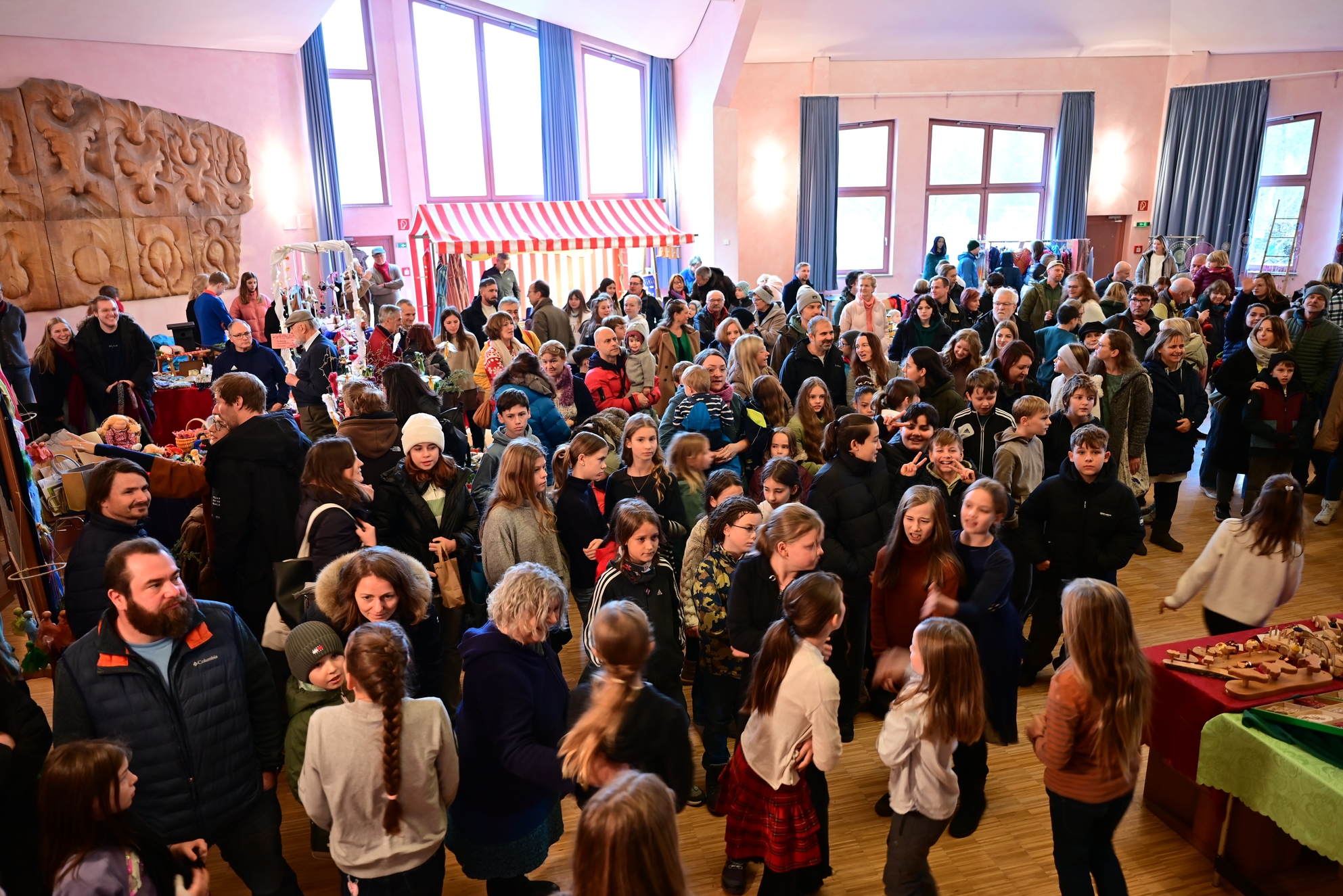 Liebevoll gestaltete Stände mit Weihnachtsartikeln aus Wolle, Holz oder Filz, dazu mehrere Cafés mit Herzhaftem, Kuchen, Kaffee und Punsch und die Möglichkeit, einen Adventskranz selbst zu binden - dies waren einige der Highlights unseres Adventsbasars 2025. Die kleinen Gäste durften selber Kerzen ziehen, Plätzchen im Pizzaofen backen, in geheimnisvoller Stimmung Lichterschifffchen über das Wasser schweben lassen und sich den Weg durch ein Klassenzimmer, das sich in einen verwunschenen Wald verwandelt hatte, zum Hexenhaus bahnen. Zur Belohnung gab es dort leckere Lebkuchen. Ein gelungener Start in die Vorweihnachtszeit ...