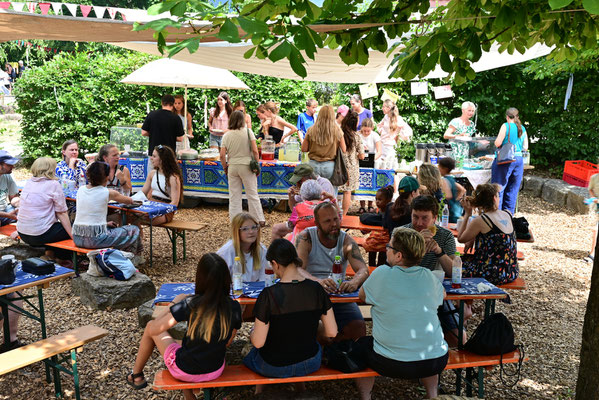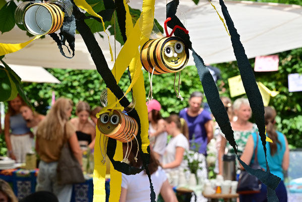 Einmal mehr hat sich unser Schulgelände in ein sonnendurchflutetes und quirliges Meer von Ständen, Attraktionen und Cafés verwandelt. Barfußpfad-Parcours, Perlenfäden-Basteln, Blumenkranz-Binden und vieles mehr luden zum Mitmachen ein, dazu gab es ein vielfältiges kulinarisches Angebot von Crêpes, Kuchen und Waffeln, über Bratwürste, Pizza und Fruchtspieße bis zu Cocktails, Saftschorlen und Eisteekreationen. Man sieht, dass es den Besuchern gefallen hat...