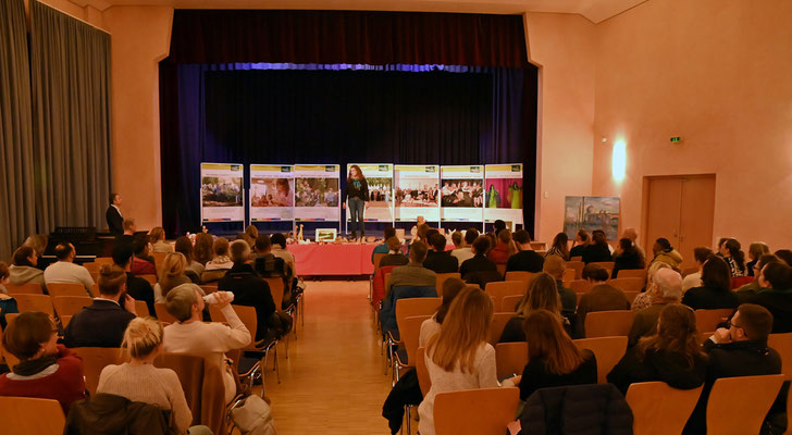 An beiden Präsentationstagen konnten die Stände zu den einzelnen Themen und Werktsücken besucht und mit den Achtklässlern gesprochen werden. Engagement und Zeit hatten diese in die Vorbereitung der mündlichen Vorträge gesteckt, sodass vielen trotz der Aufregung das Vorstellen des eigenen Themas auf der Bühne vor einem gute gefüllten Festsaal gelang.