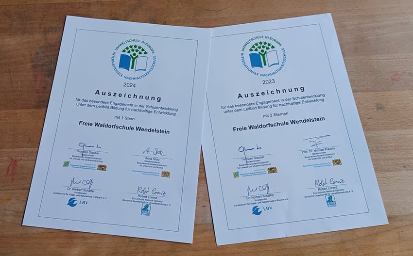 Seit dem Schuljahr 2015/2016 beteiligt sich auch die Freie Waldorfschule Wendelstein jährlich mit ihren Projekten. Jedes Jahr neu konnten wir uns seither über die Auszeichnung freuen.